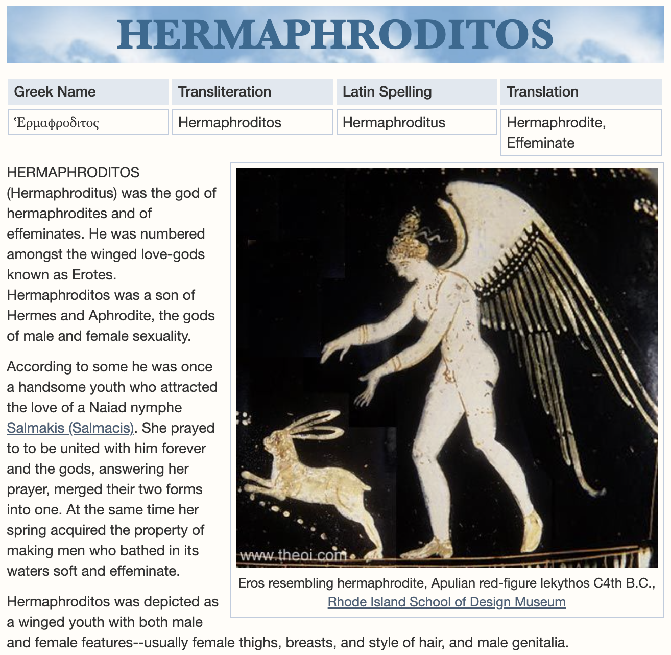 The worship of hermaphrodites goes back to antiquity.